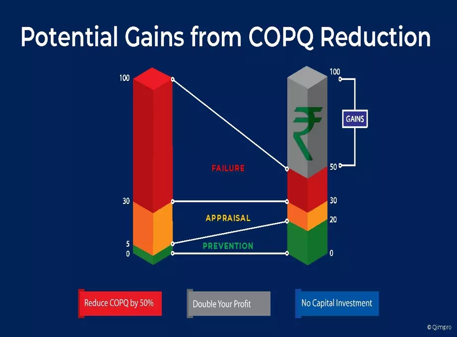 - ต้นทุนของคุณภาพที่ไม่ดีคือผลรวมของต้นทุนความล้มเหลวภายในและภายนอก (CoPQ = IFC + EFC)