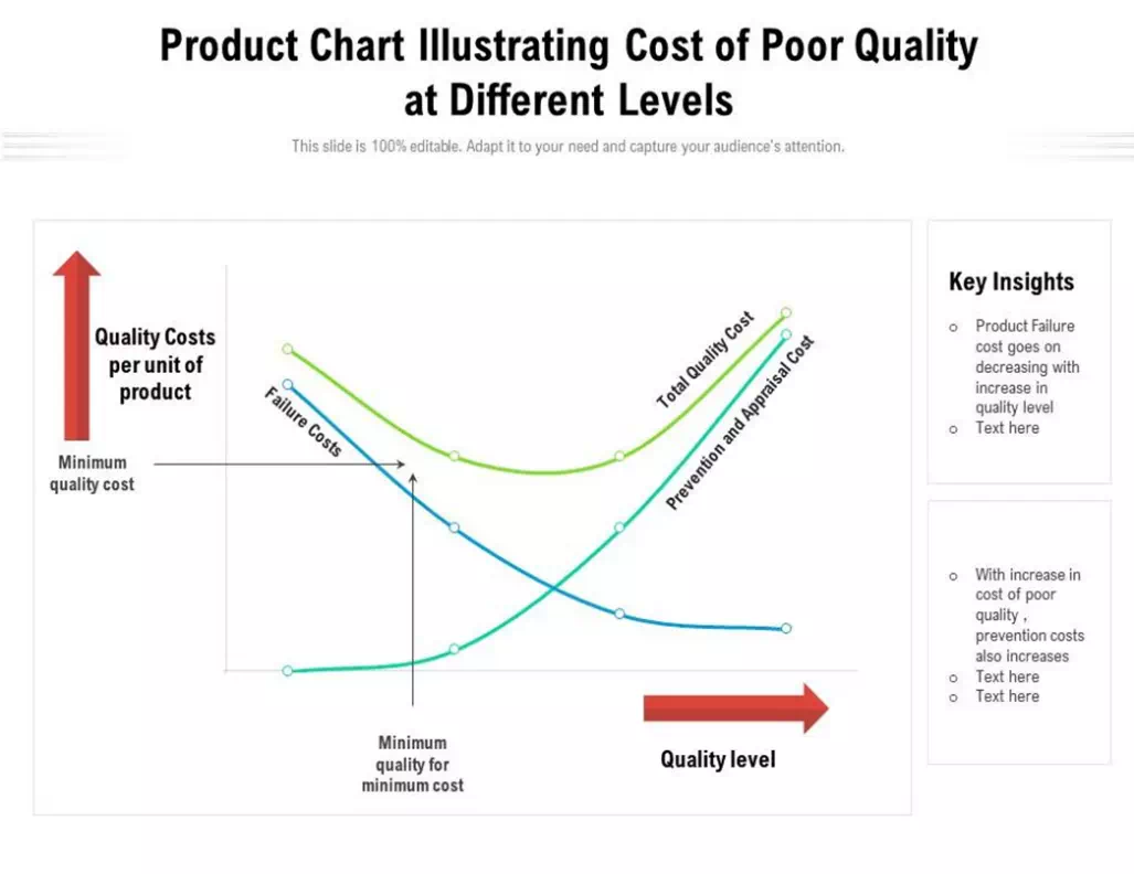 โดยทั่วไปแล้ว ต้นทุนของสินค้าคุณภาพต่ำมักจะเพิ่มขึ้นในอัตราที่สูงชันกว่าต้นทุนของสินค้าคุณภาพดี ดังนั้น การเพิ่มต้นทุนของสินค้าคุณภาพดีจึงอาจทำให้ COQ รวมลดลงได้ นี่คือมาตรการป้องกันที่คุณสามารถนำไปใช้เพื่อลดต้นทุนคุณภาพรวม