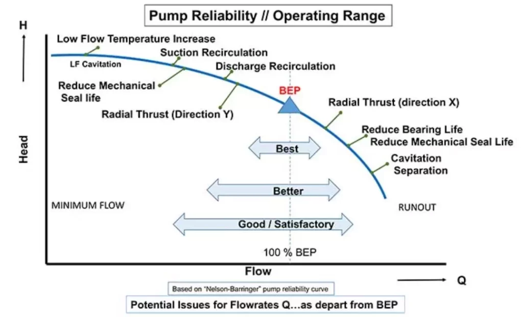 - ให้แน่ใจว่าปั๊มทำงานใกล้กับจุด BEP ซึ่งเป็นจุดที่มีประสิทธิภาพสูงสุด