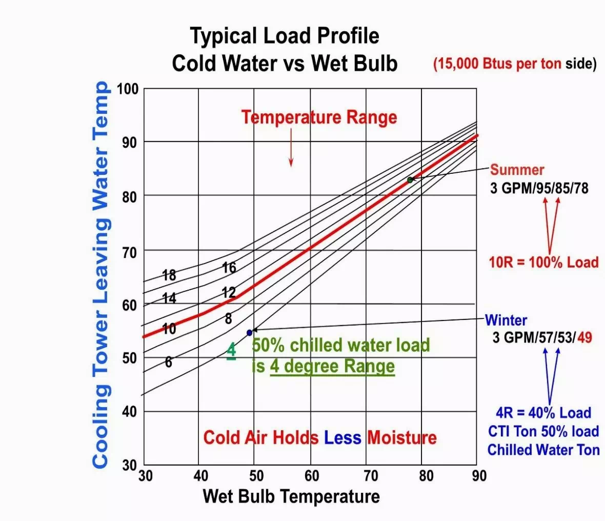 ความสัมพันธ์ระหว่าง Wet bulb temperature, Approaching temperature, Water flow, Air flow และ Heat load ต่อสมรรถนะของหอหล่อเย็น